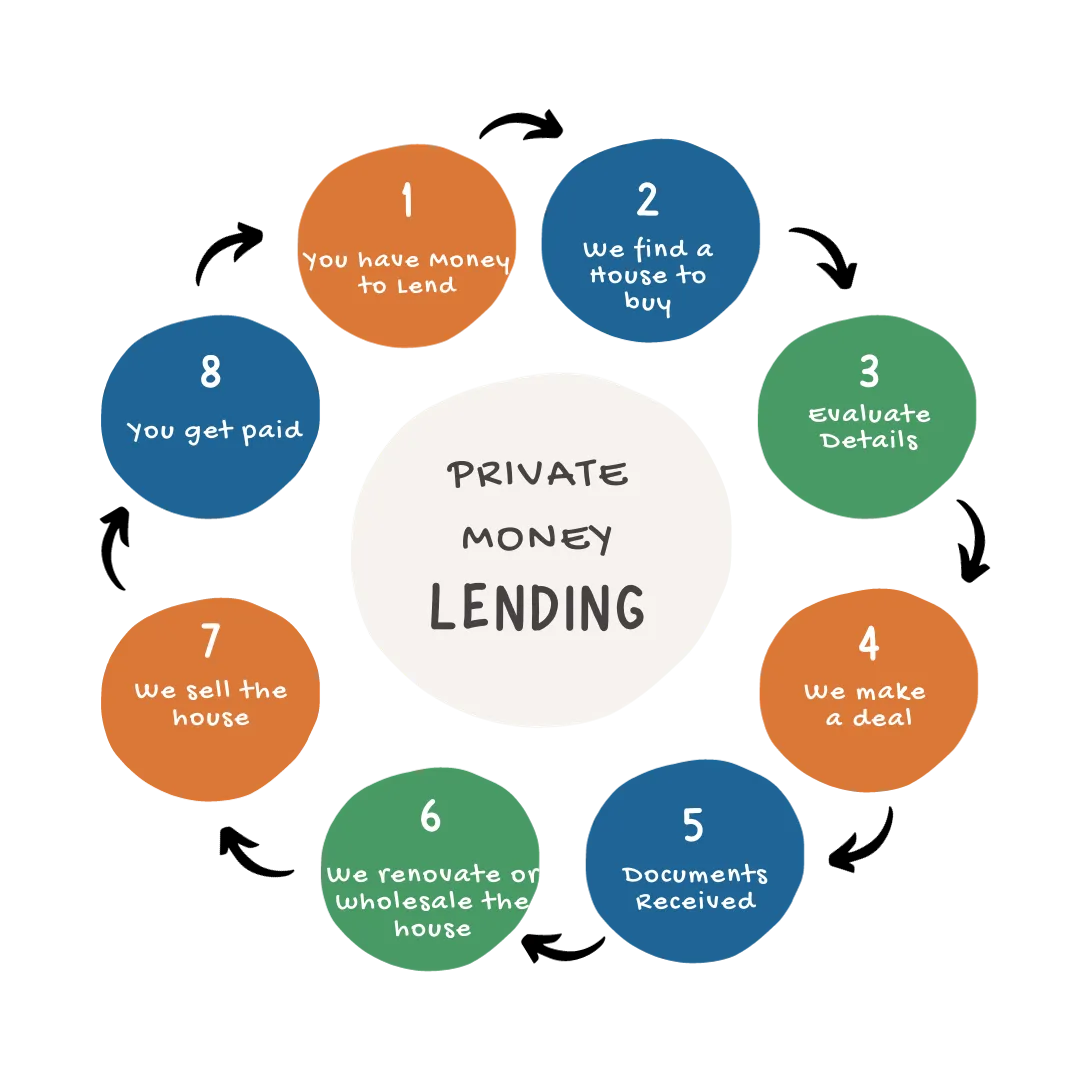 A private money loan refers to a loan provided to a real estate investor, with the real estate serving as collateral. Private money investors are granted a first or second mortgage, which secures their legal stake in the property and protects their investment. Whenever we identify a property significantly below market value, we offer our private lenders the chance to finance the purchase and renovation of the property. This allows the lender to earn remarkably high interest rates, surpassing those attainable through bank CDs and other conventional investment schemes by four or five times.